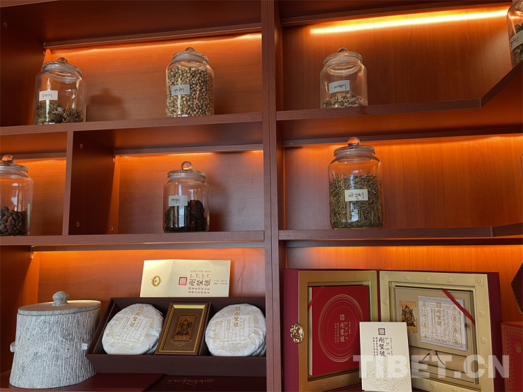 圖為“丹珍曼塘”內(nèi)部的草藥及商品陳列 攝影:王妍丹