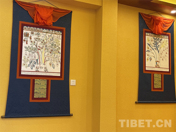 圖為店內(nèi)墻壁上的藏醫(yī)藥唐卡 攝影:王妍丹