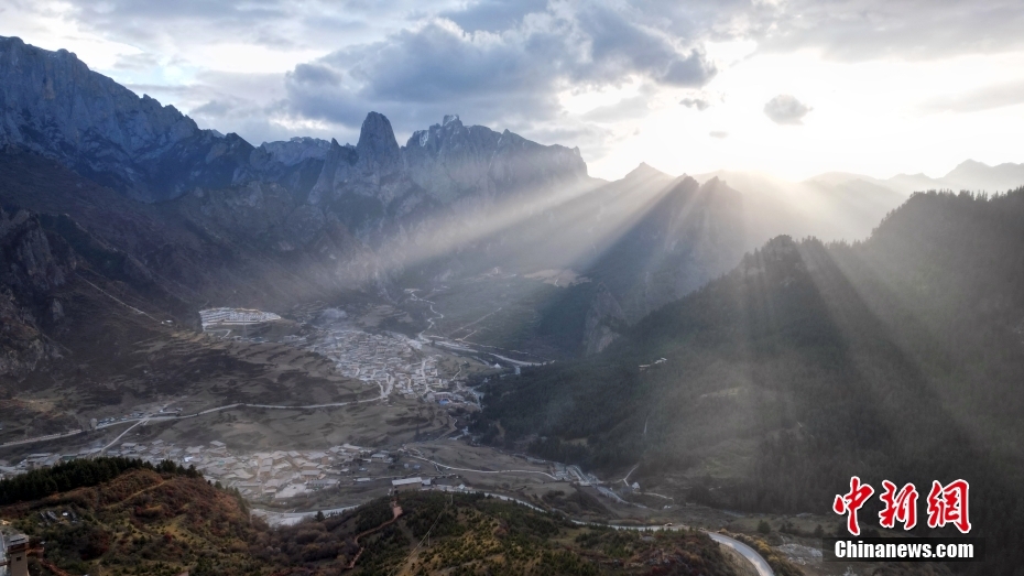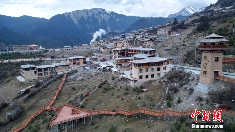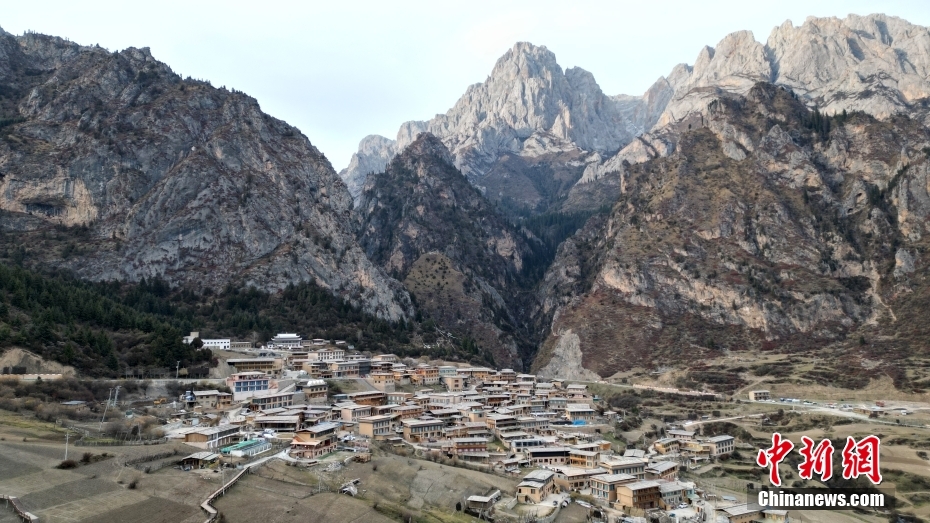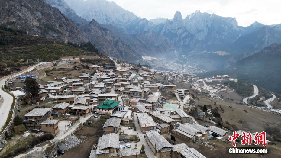 11月3日,航拍甘肅省甘南藏族自治州迭部縣扎尕那景區(qū)藏族村落的建筑。(無人機(jī)照片)中新社記者 九美旦增 攝