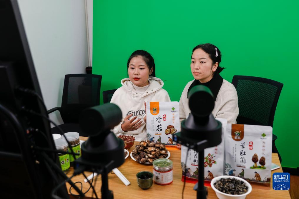 11月15日,在舟曲縣電子商務公共服務中心,主播線上直播銷售農(nóng)特產(chǎn)品。新華社記者 方欣 攝