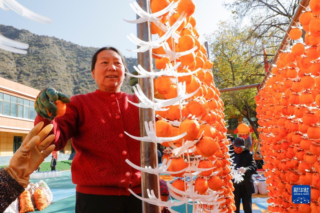 11月14日,在舟曲縣立節(jié)鎮(zhèn)杰迪村,村民在晾曬柿子。新華社記者 方欣 攝