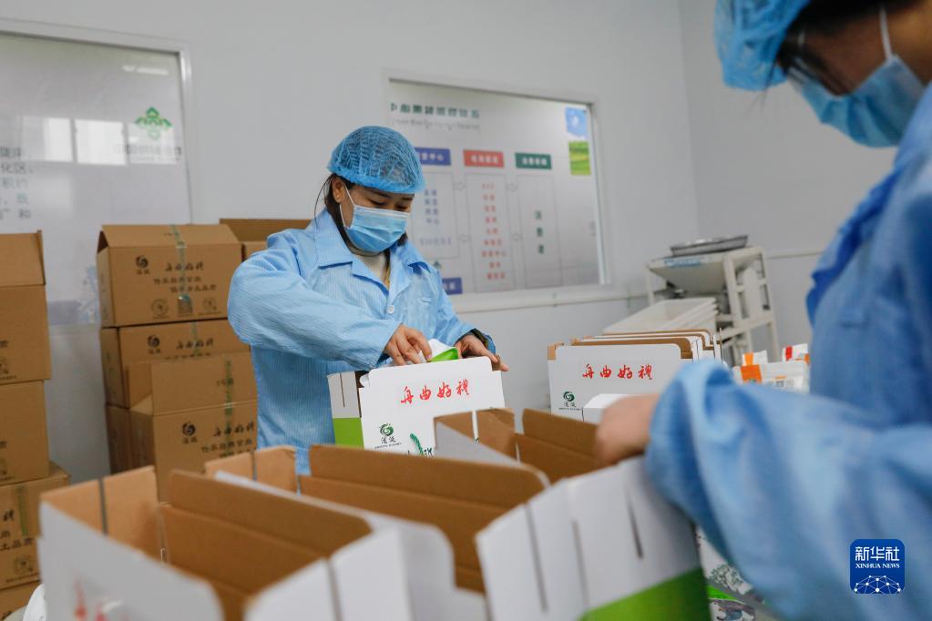 11月15日,在舟曲縣電子商務公共服務中心,工作人員在包裝農(nóng)產(chǎn)品。新華社記者 方欣 攝