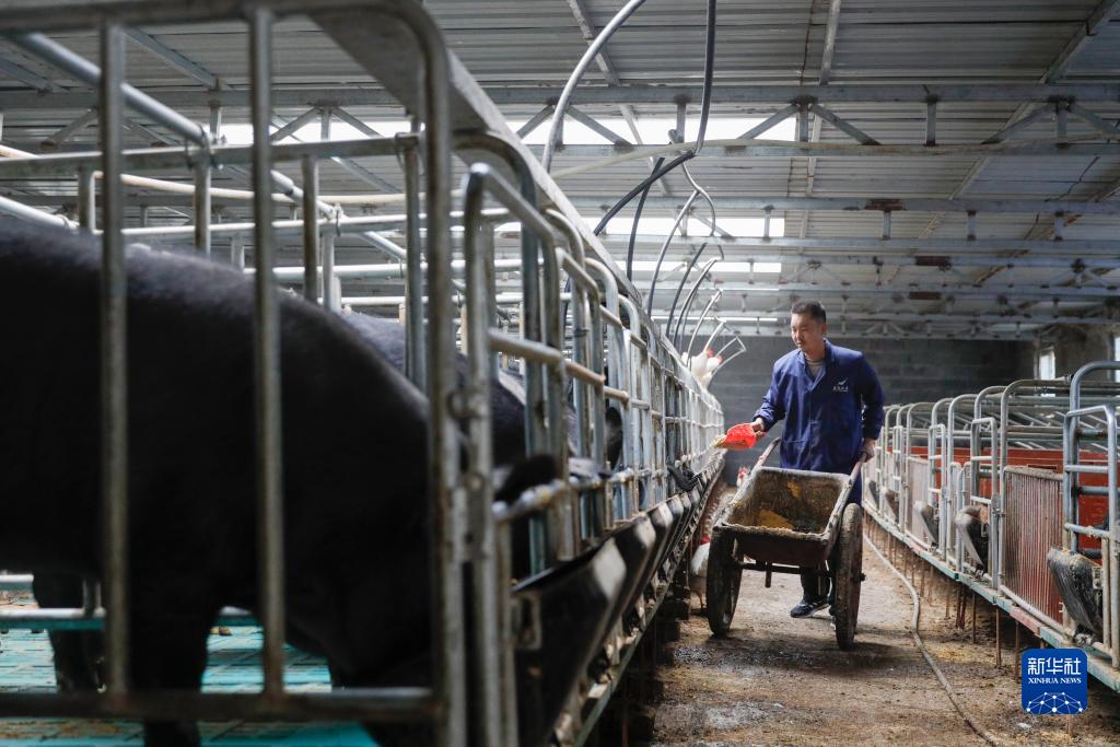 11月15日,在舟曲縣峰迭鎮(zhèn)狼岔壩村,村民在喂黑土豬。新華社記者 方欣 攝