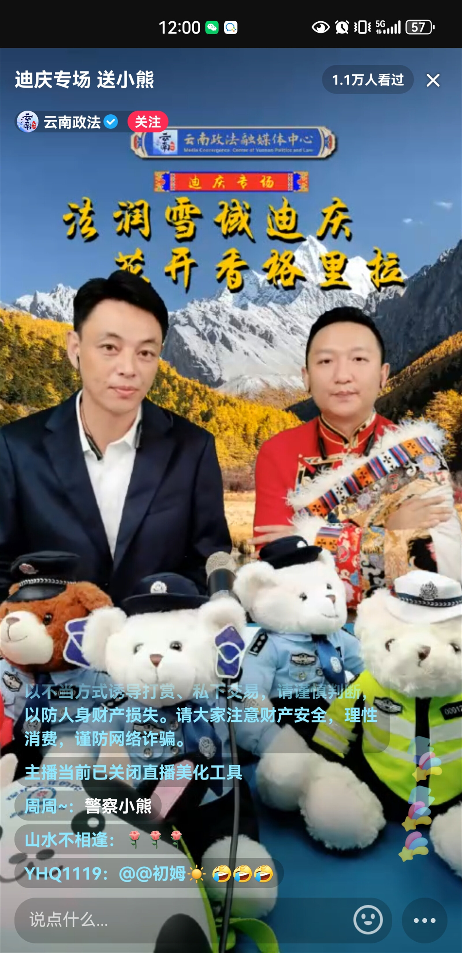 近日,迪慶州政法干警走進云南政法普法強基直播間開展“法潤雪域迪慶、花開香格里拉”迪慶州普法專場直播,直播聚焦群眾關(guān)切,緊密聯(lián)系時事熱點,帶廣大網(wǎng)友體驗了一場內(nèi)容豐富的普法之旅,共吸引9.1萬人觀看,獲點贊超10.4萬。