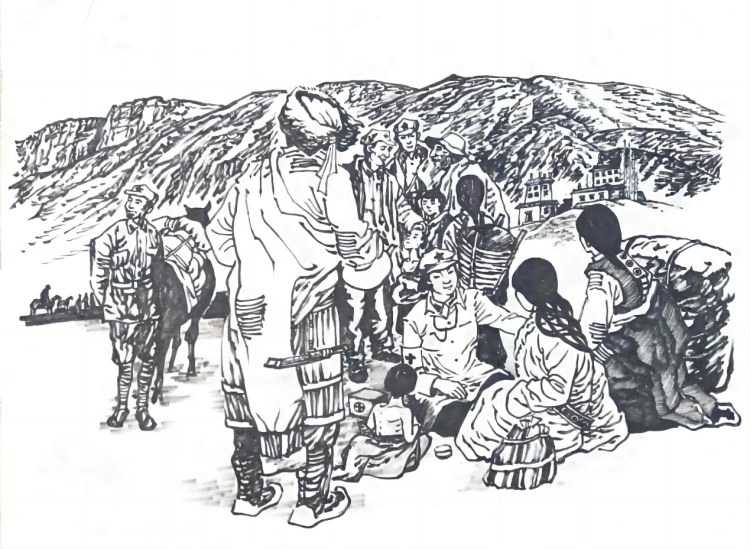 紅軍醫(yī)生與藏族百姓(四川民族學院郭重曦繪)