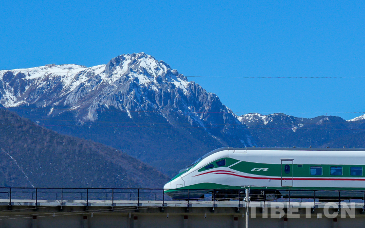 圖為“復(fù)興號(hào)”動(dòng)車組列車,鐵路沿線植被茂密,也可見(jiàn)美麗的雪山,宛如一幅畫卷。迪慶日?qǐng)?bào)社供圖