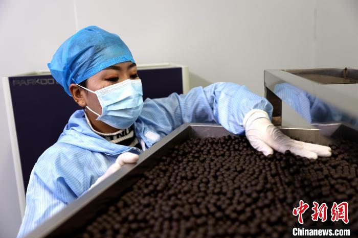 圖為藏藥制劑室工作人員晾曬藥丸。薛蒂 攝