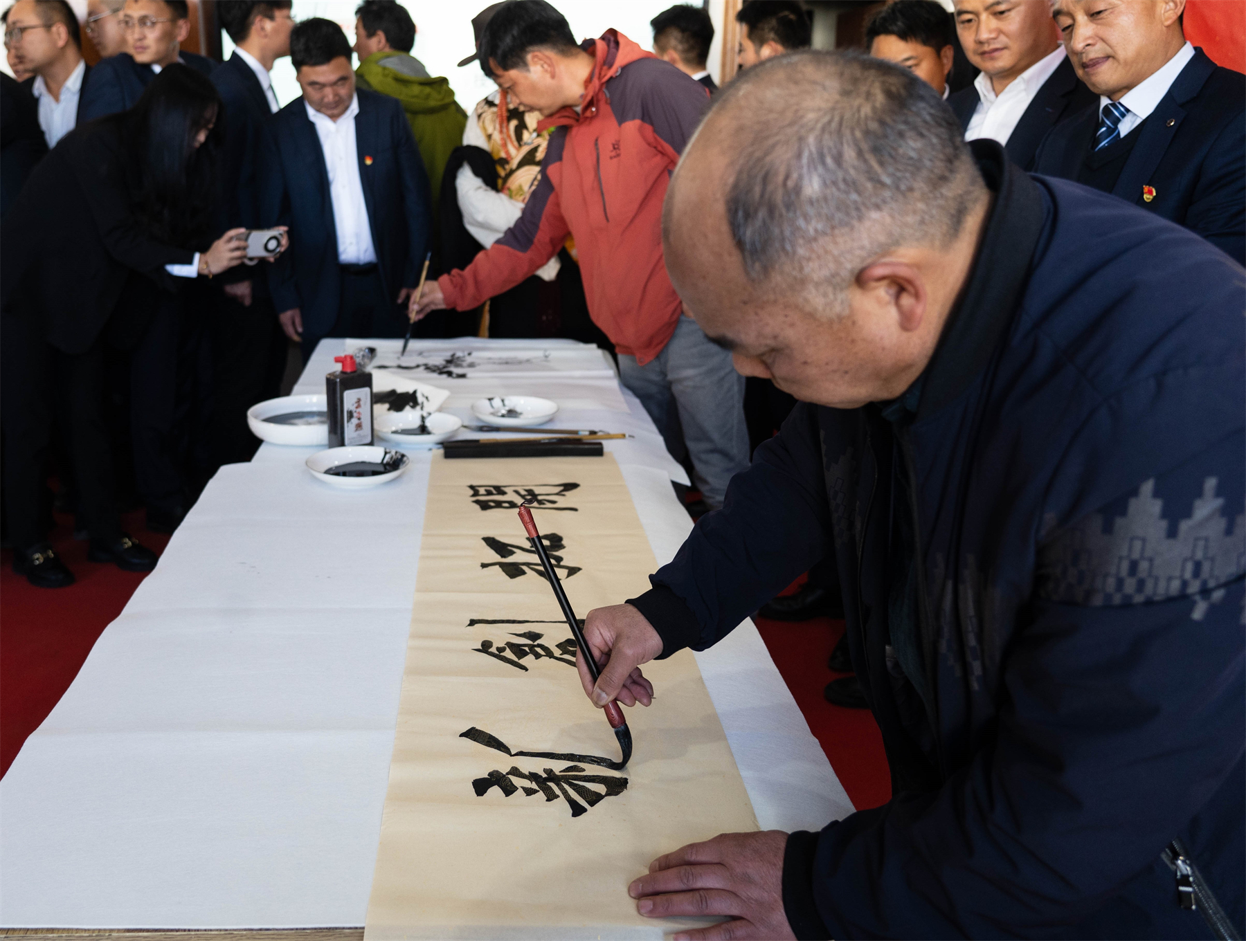 活動(dòng)中,迪慶州書法家協(xié)會、美術(shù)家協(xié)會、攝影家協(xié)會的藝術(shù)家們現(xiàn)場創(chuàng)作書法、美術(shù)作品,開展攝影創(chuàng)作技術(shù)心得交流講座,迪慶州歌舞團(tuán)、舞蹈家協(xié)會、音樂家協(xié)會和鐵塔迪慶分公司員工代表帶來了精彩的文藝表演。演出精彩之處,臺下觀眾掌聲和喝彩聲此起彼伏,現(xiàn)場氣氛熱烈,讓員工們在家門口品位“文化盛宴”。
