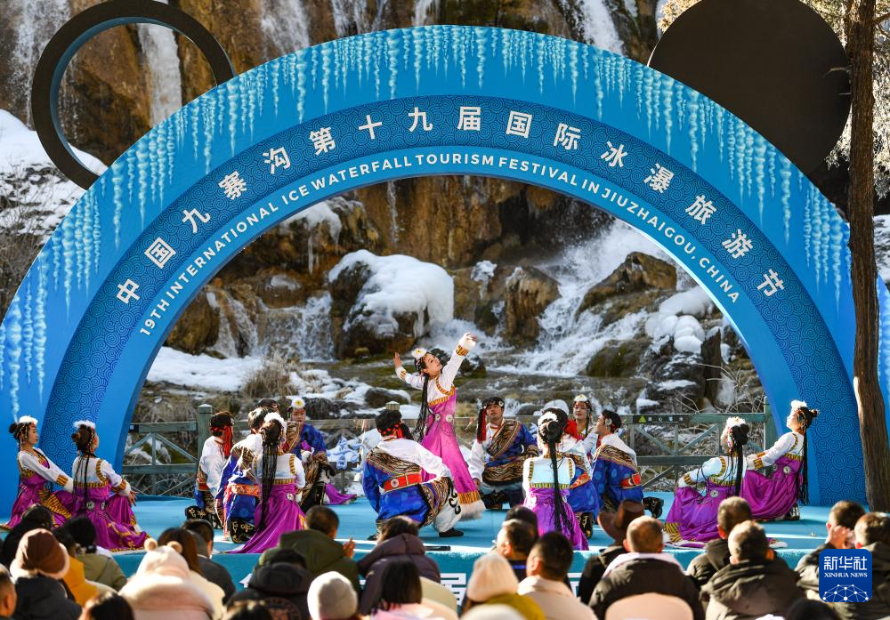 1月4日,演員在中國(guó)九寨溝第十九屆國(guó)際冰瀑旅游節(jié)開幕式上表演。新華社記者 王曦 攝