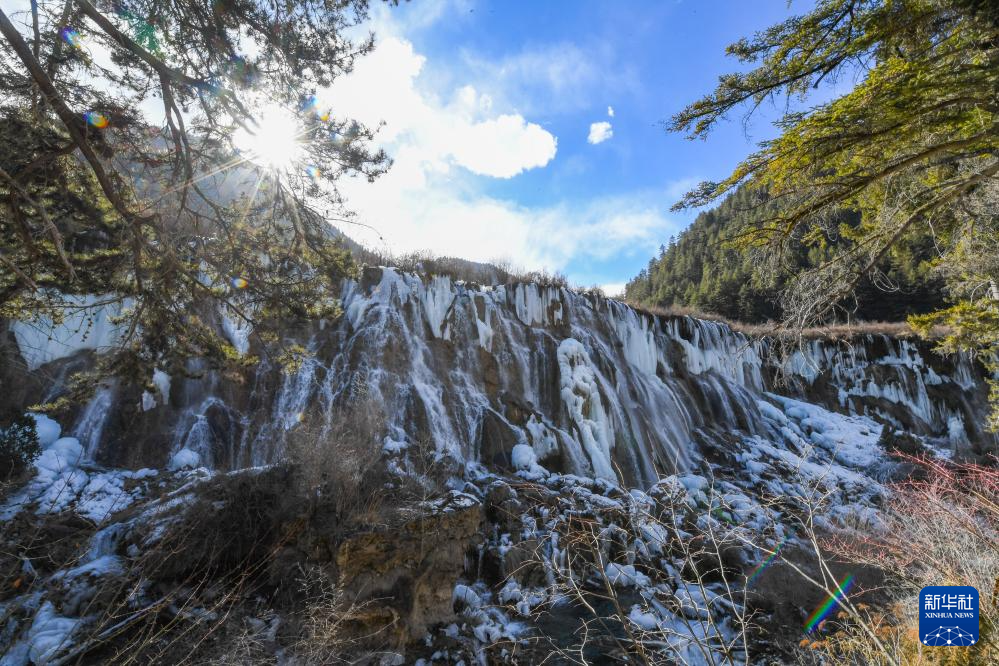 1月4日,中國(guó)九寨溝第十九屆國(guó)際冰瀑旅游節(jié)開幕式在四川九寨溝風(fēng)景名勝區(qū)舉行。景區(qū)內(nèi)特有的藍(lán)色冰瀑,在冬日暖陽的照射下氤氳著水汽,讓游客沉浸于九寨溝的冬季魅力。