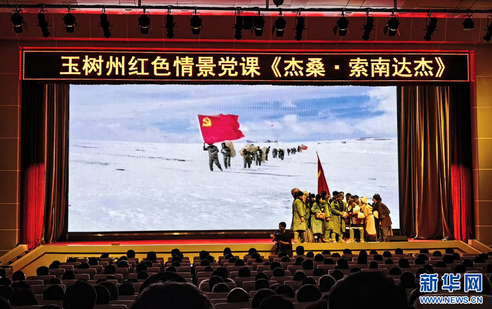 圖為紅色情景黨課《杰桑·索南達(dá)杰》演出現(xiàn)場(chǎng)。(2023年12月18日攝) 新華社記者 柳澤興 攝