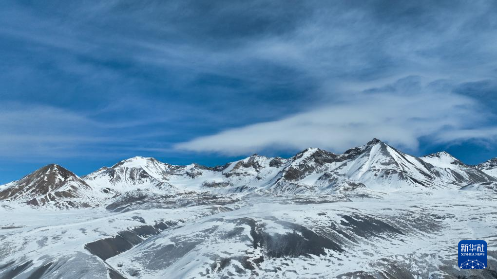 這是1月23日在青海省海北藏族自治州門(mén)源回族自治縣境內(nèi)拍攝的崗什卡雪峰(無(wú)人機(jī)全景照片)。新華社記者 張龍 攝