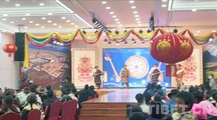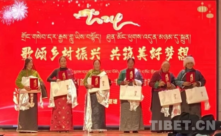 晚會還設置了表彰和敬獻哈達環(huán)節(jié)。表彰了十個好兒媳和好婆婆,并頒發(fā)了榮譽證書。向健在的歷任書記敬獻哈達,并贈予當?shù)啬撩駛冇H手制作的酥油點心和一個鍋盔饃饃。還對全村七十歲以上的老人進行了慰問等,體現(xiàn)了黨和國家對基層群眾的關心和關懷。