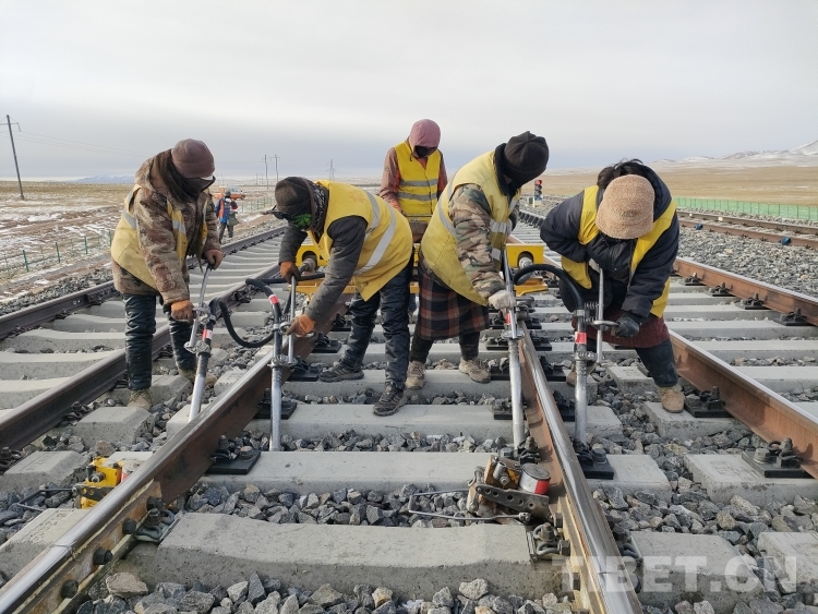 中國西藏網(wǎng)訊 2月9日,大年三十,中國鐵路青藏集團(tuán)有限公司格爾木工務(wù)段沱沱河線路車間通天河線路工區(qū)的10名職工驅(qū)車1小時(shí)來到青藏鐵路塘崗站,對鐵路線路設(shè)備病害進(jìn)行整治。