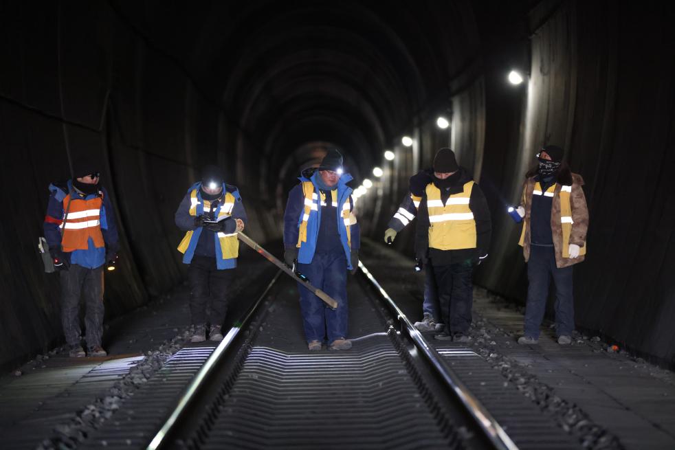 “路基變化、氣候波動……這些因素都是研究凍土影響的關(guān)鍵數(shù)據(jù),一絲一毫的變化都會導(dǎo)致線路出現(xiàn)不同的問題?!惫と藗儊淼阶鳂I(yè)地點開始上道作業(yè),張福強掏出一本快被翻爛的筆記本,一邊記下這次養(yǎng)護的氣候及線路數(shù)據(jù),一邊和工友們向隧道深處走去。
