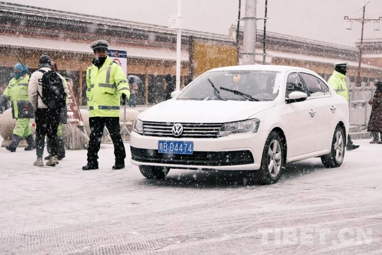圖為交警維持現(xiàn)場(chǎng)交通秩序。攝影:桑吉