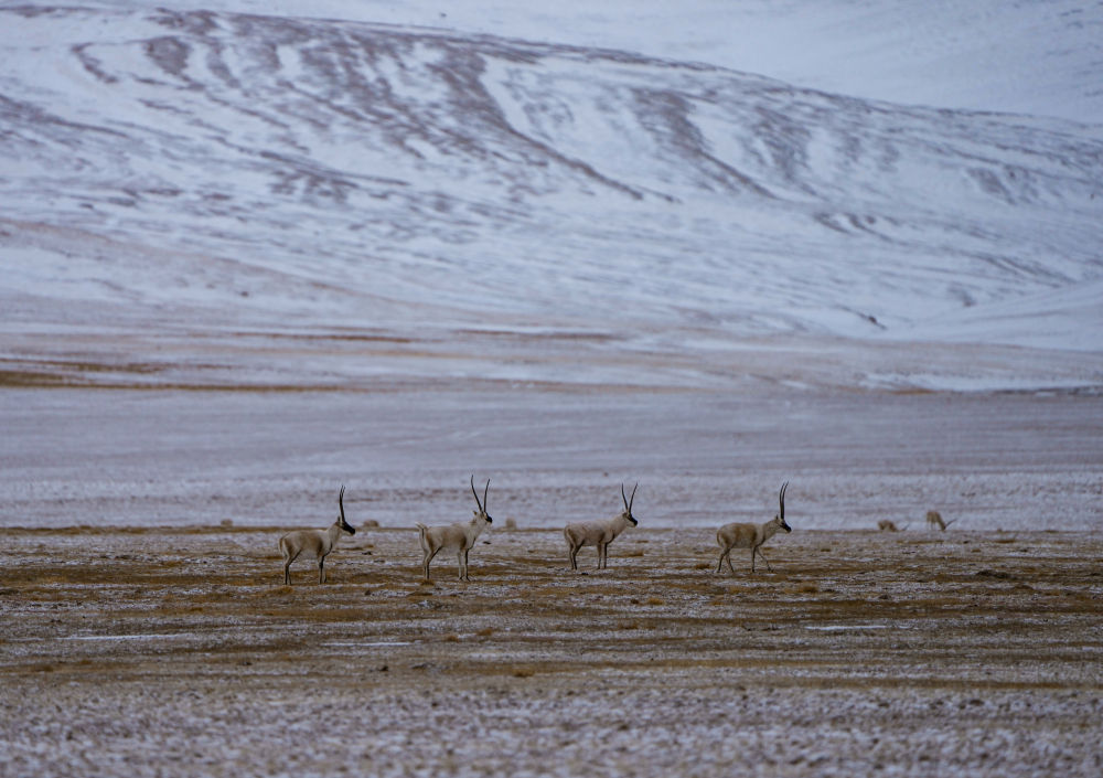 生活在三江源國(guó)家公園唐北片區(qū)的藏羚羊(2024年2月1日攝)。新華社記者 儲(chǔ)國(guó)強(qiáng) 攝