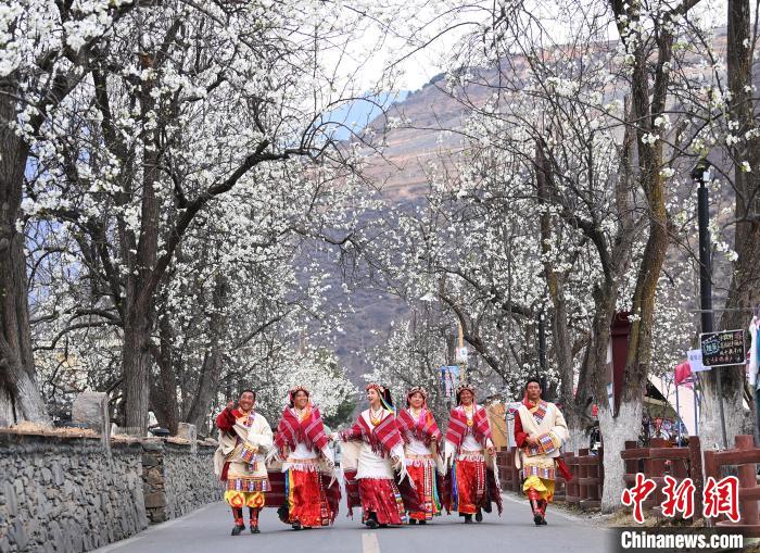 3月17日,四川省阿壩州金川縣萬畝梨花綻放,滿山遍野,雪白的梨花,隨風飄絮,藍天白云,花海飄香,令人陶醉。吸引眾多游客前來游覽、拍照。