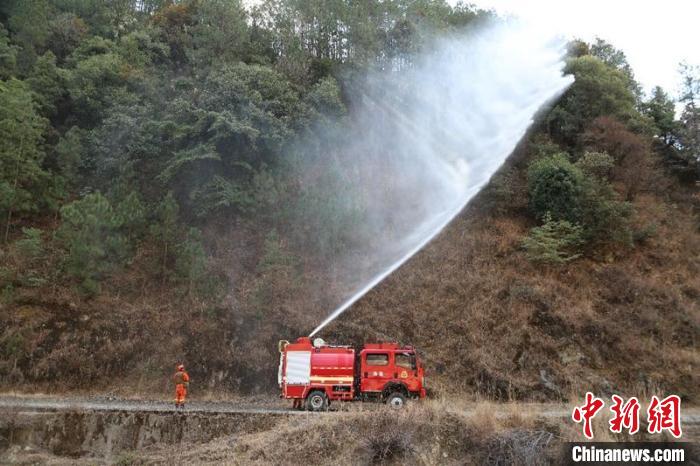 森林消防員對(duì)部分區(qū)域開展增濕作業(yè)。四川森林消防供圖
