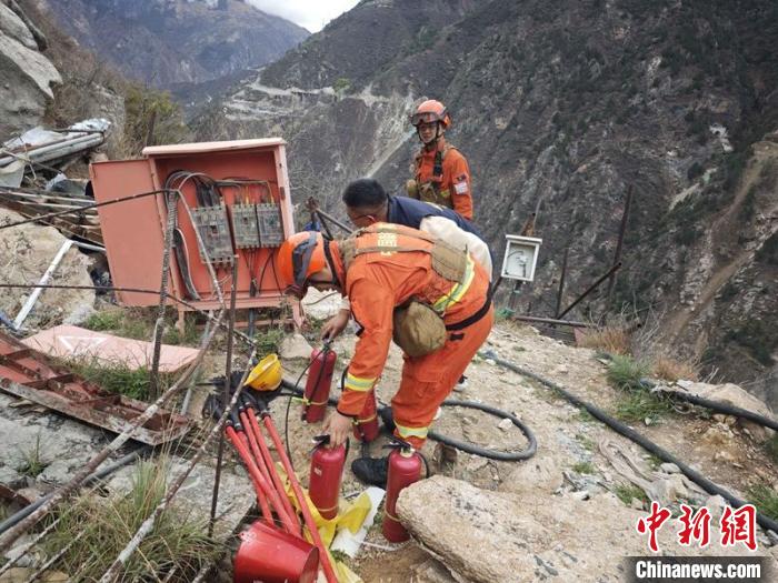 森林消防員檢查企業(yè)野外施工用電安全和防火措施落實(shí)現(xiàn)場(chǎng)。四川森林消防供圖