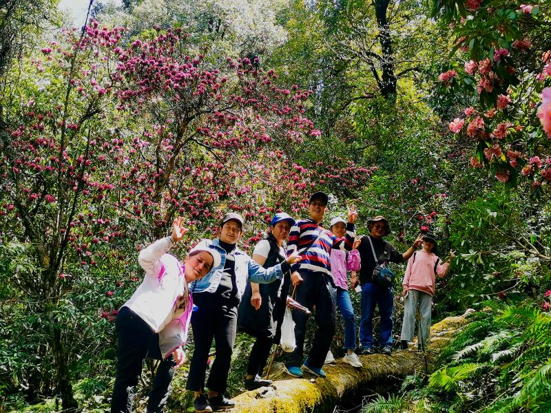 近日,維西縣攀天閣鄉(xiāng)岔枝洛村的杜鵑花迎來盛開期,一簇簇粉紅、艷紅、雪白等各色杜鵑與青山交相輝映,呈現(xiàn)一派春意盎然的美好景象,吸引眾多游客前來踏春賞花。