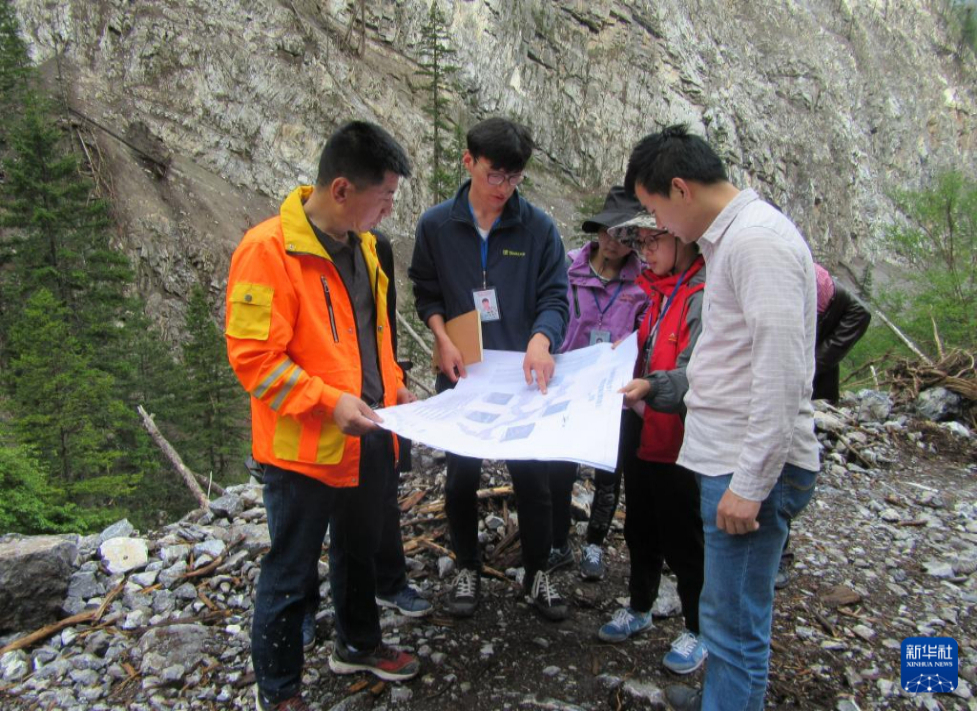 2018年,裴向軍(左一)率團(tuán)隊(duì)在九寨溝做震后地質(zhì)災(zāi)害詳查(資料照片)。新華社發(fā)