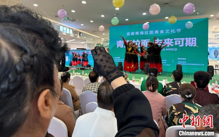 活動現(xiàn)場,人頭攢動,展示區(qū)展出拉面成品,可品嘗手工拉面,亦有牦牛肉干、甜醅等青海特色美食,相關(guān)從業(yè)人員“各顯神通”,吸引來往行人。