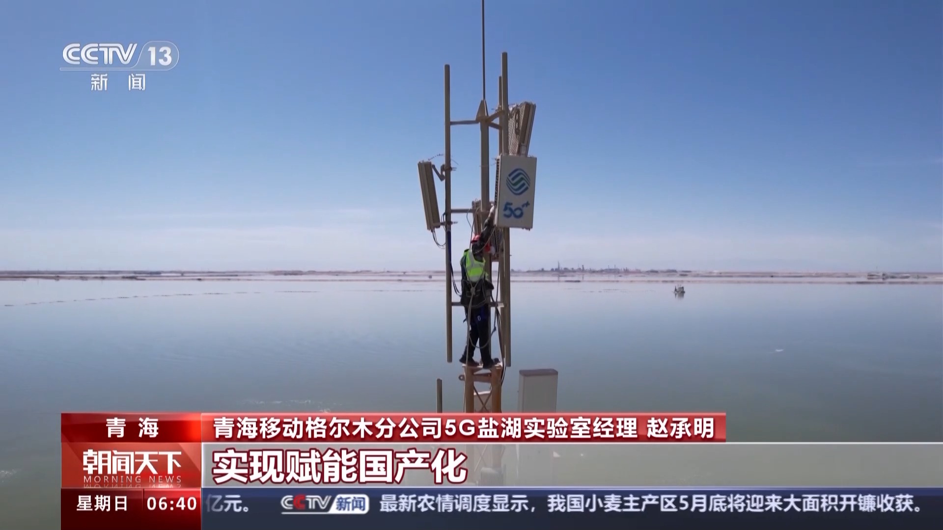 總臺(tái)央視記者 孫薊濰:我現(xiàn)在是在亞洲最大的鹽湖——察爾汗鹽湖,這里曾經(jīng)是一片無(wú)人區(qū),隨著信號(hào)升格行動(dòng)的展開(kāi),這里已經(jīng)覆蓋了5G網(wǎng)絡(luò)。