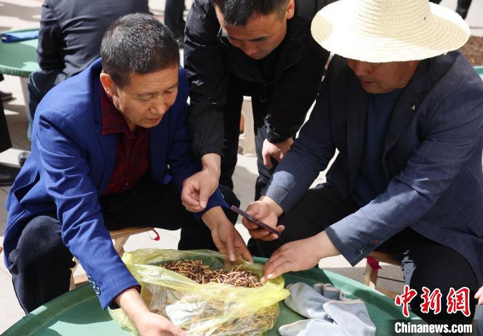 當(dāng)日,記者走訪正在舉行冬蟲夏草鮮草節(jié)的青海玖鷹蟲草市場(chǎng)。像馬金祥一樣的商販,不僅在此晾曬還包裹著黑褐色泥土的新鮮冬蟲夏草,且提供刷土、篩選、真空打包、郵寄一條龍服務(wù)。