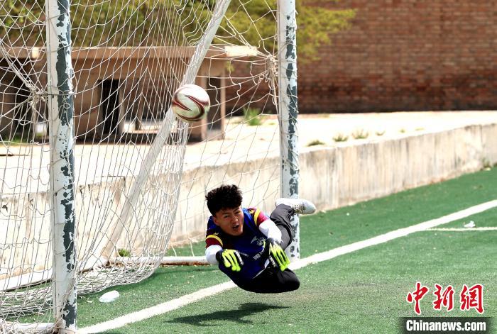 圖為守門(mén)員全力撲救。薛蒂 攝