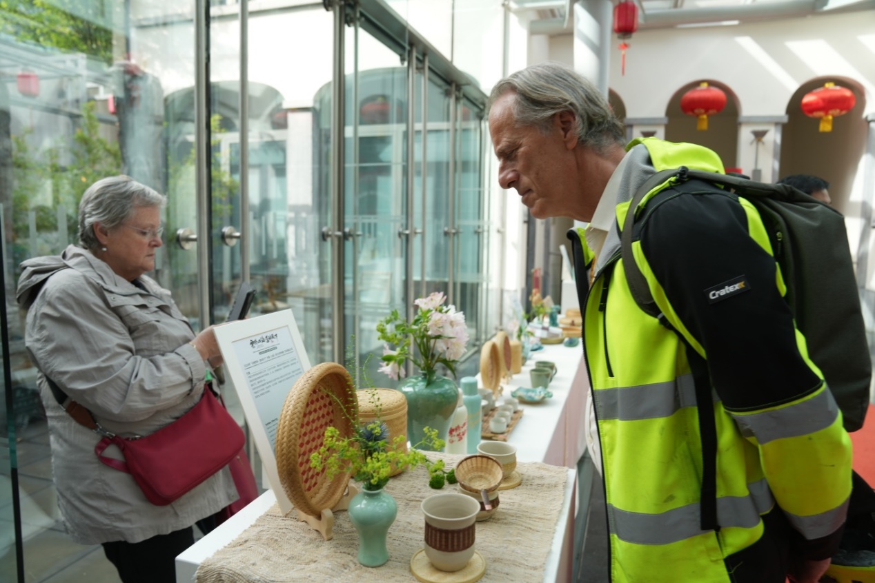 和傳拓技藝一起亮相歐洲的還有經(jīng)緯交錯的指尖藝術(shù)——宜良竹編、色如翡翠的高原綠陶——云南華寧陶等。宜良竹編特有的立體梅花紋,仿若繡花般精細(xì),讓人連連驚嘆。華寧陶獨(dú)特的綠釉,似松煙似云霧,美得讓人沉醉。