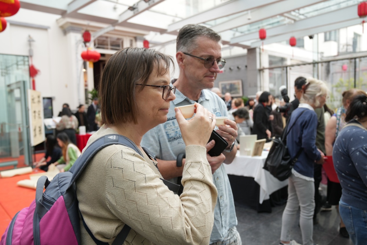 從法國巴黎到比利時布魯塞爾,傳拓體驗區(qū)人山人海。傳拓工藝可以將每一片傳統(tǒng)的“七子餅”茶量身定制成層次分明、索條清晰的獨(dú)特“身份證”,而隨著墨棒掃過,一幅幅“茶馬古道”“云騰四海·茗動天下”拓畫躍然紙上。引得嘉賓忍不住上手體驗,并將制作好的作品珍藏。
