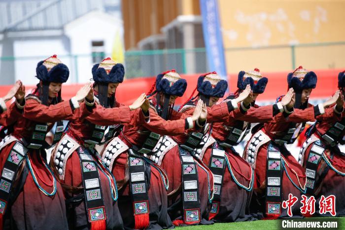 圖為演員展示國(guó)家級(jí)非遺華熱藏族服飾。馬銘言 攝