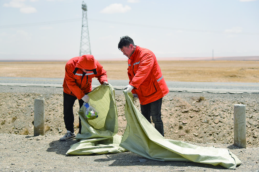 一邊收垃圾,香多才仁一邊對(duì)司機(jī)宣傳道:“這里是三江源國(guó)家公園,也是可可西里世界自然遺產(chǎn)地,這里的生態(tài)環(huán)境需要我們所有人共同守護(hù),希望大家自覺(jué)把垃圾扔進(jìn)垃圾桶。”