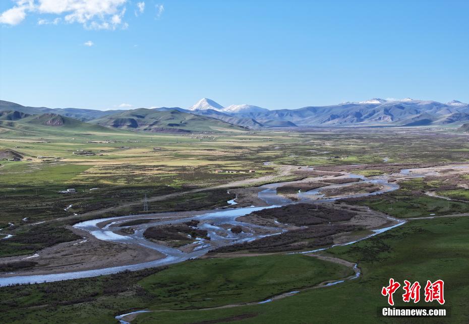 6月4日,航拍青海省海北藏族自治州剛察縣夏日草原秀美風(fēng)光。(無人機(jī)照片)馬銘言 攝