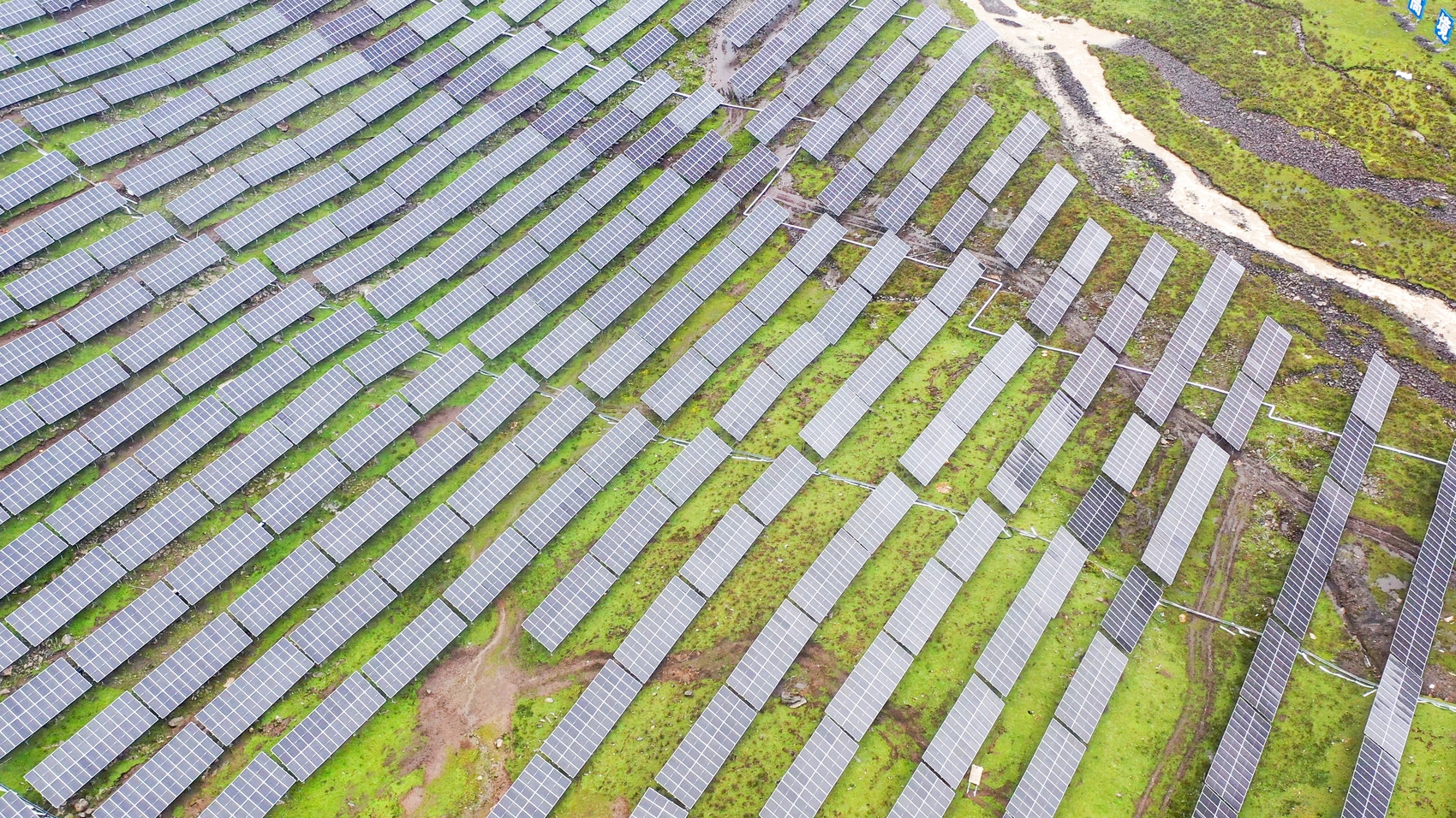 6月20日,海拔4200多米的高山遠牧點,一群群牦牛悠閑地吃著嫩綠的青草,不時發(fā)出“哞哞”的叫聲。五六米之外,就是一排排藍色太陽能光伏板整齊排列,幾十個工人穿梭其中忙著巡檢。