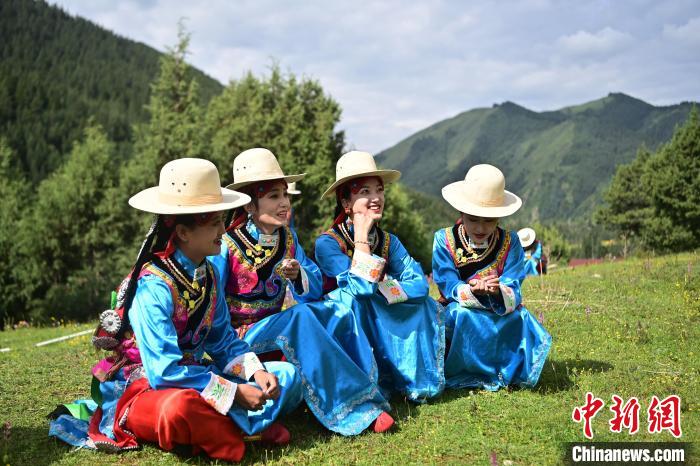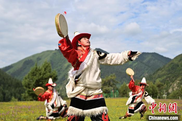 圖為在卓尼大峪溝景區(qū)表演的巴郎鼓舞。中新社記者 九美旦增 攝