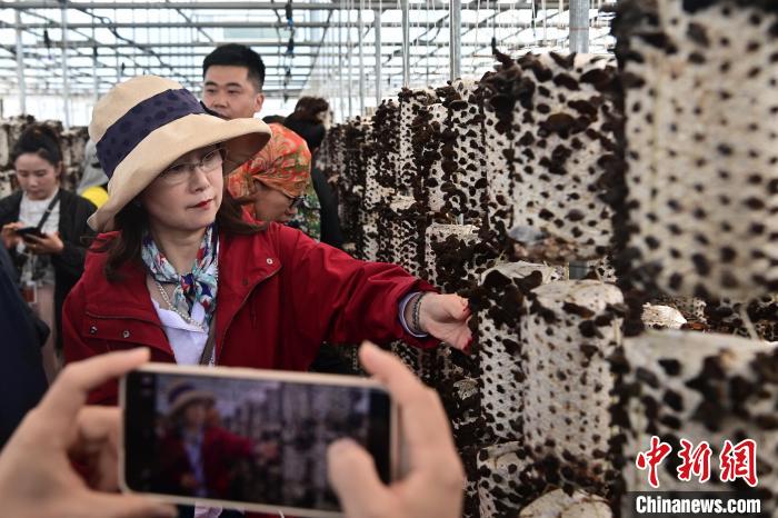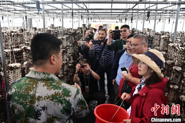 圖為華媒代表在卓尼縣木耳鎮(zhèn)采訪拍攝當(dāng)?shù)靥厣a(chǎn)業(yè)黑木耳。中新社記者 九美旦增 攝