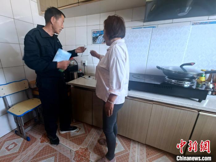 石炳壽穿上印有“海北應急”的藏青色外套,拿上鄉(xiāng)政府分發(fā)的安全防范須知就往家門外快步走去。
