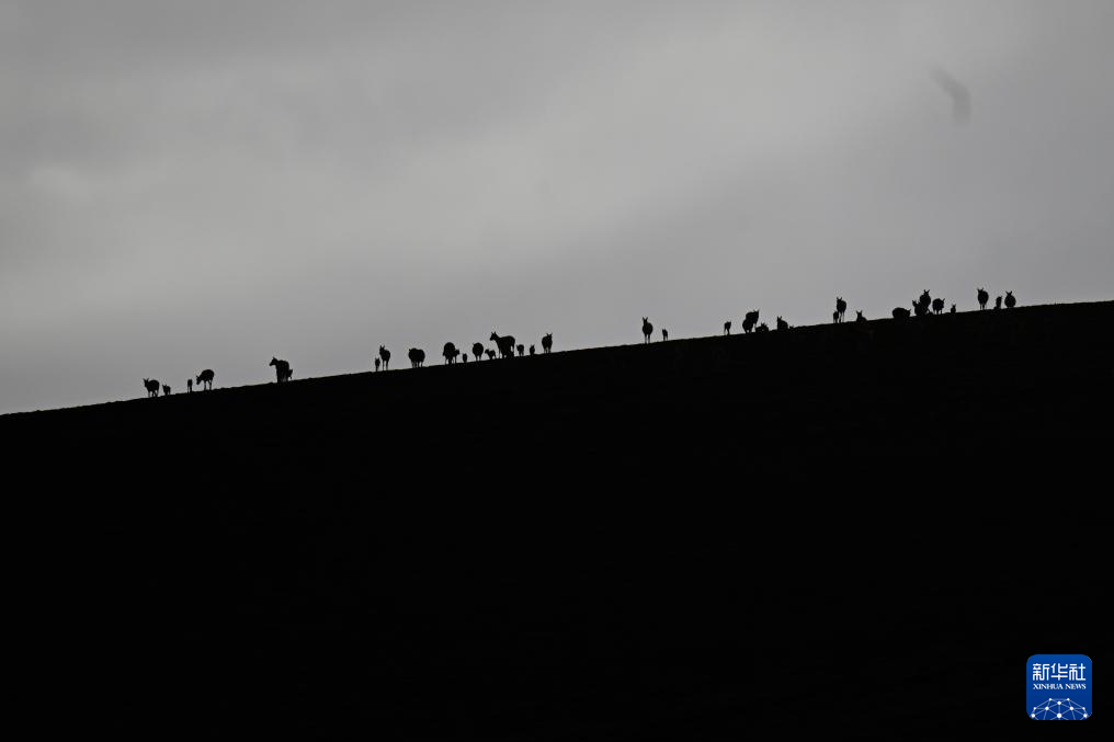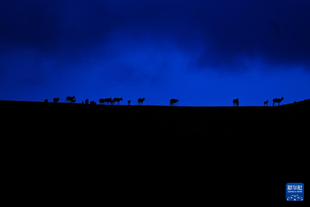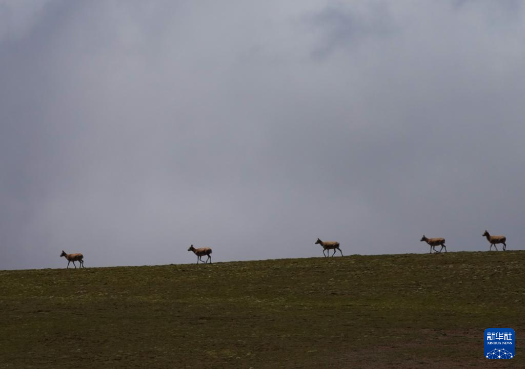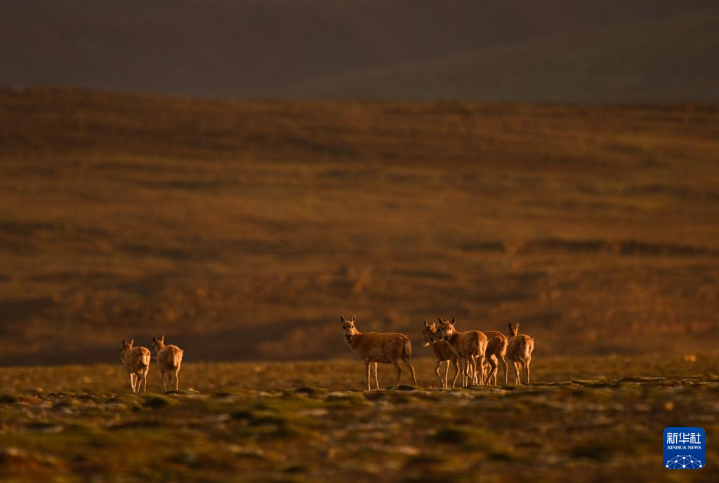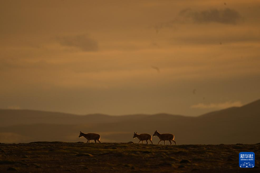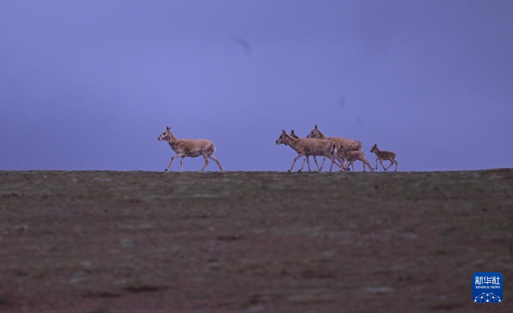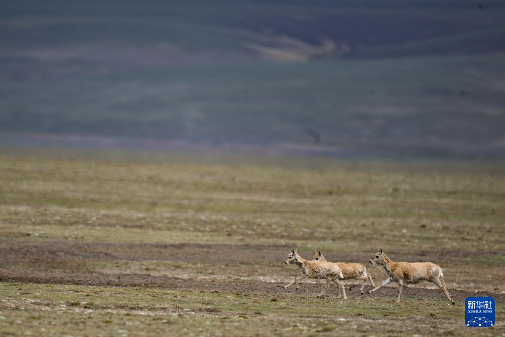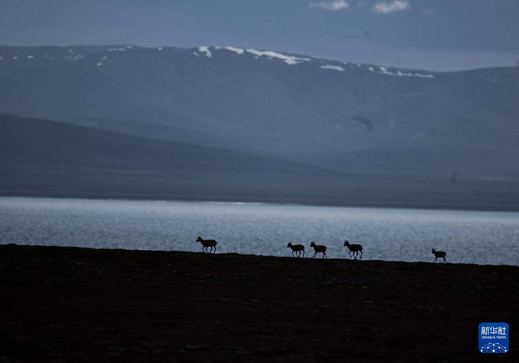7月8日,在可可西里卓乃湖區(qū)域,幾只藏羚羊在活動。新華社 杜笑微 攝
