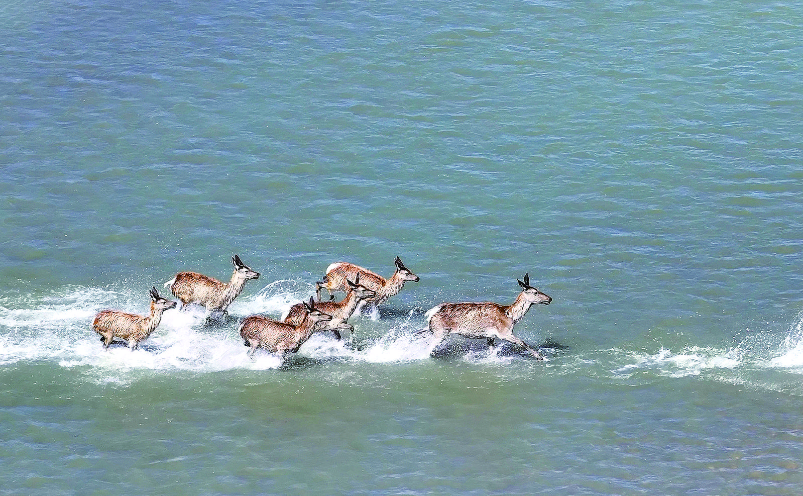 馬鹿群穿過布哈河。