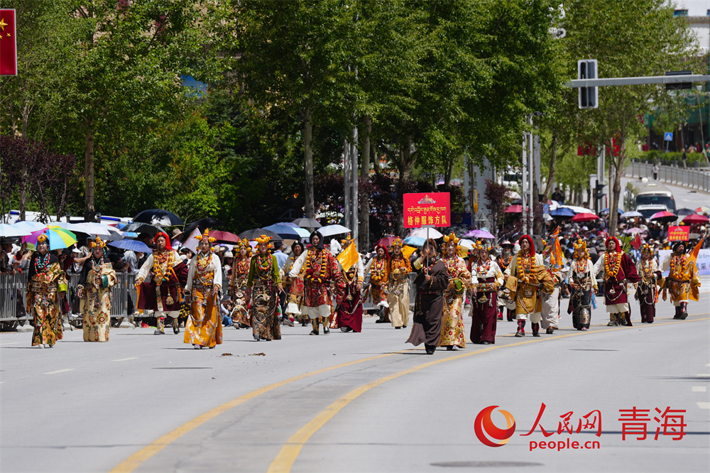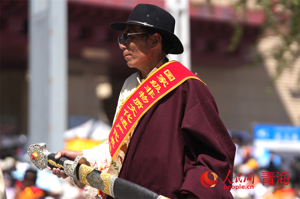 巡演現(xiàn)場,玉樹馬術方隊、康巴漢子方隊、伊舞方隊、藏族彈唱方隊、格仲服飾方隊、游牧方隊、玉樹州非物質(zhì)文化遺產(chǎn)傳承人方隊等輪番登場,形式多樣的非遺展演為廣大游客和當?shù)厝罕妿砹艘粓鲆曈X盛宴。