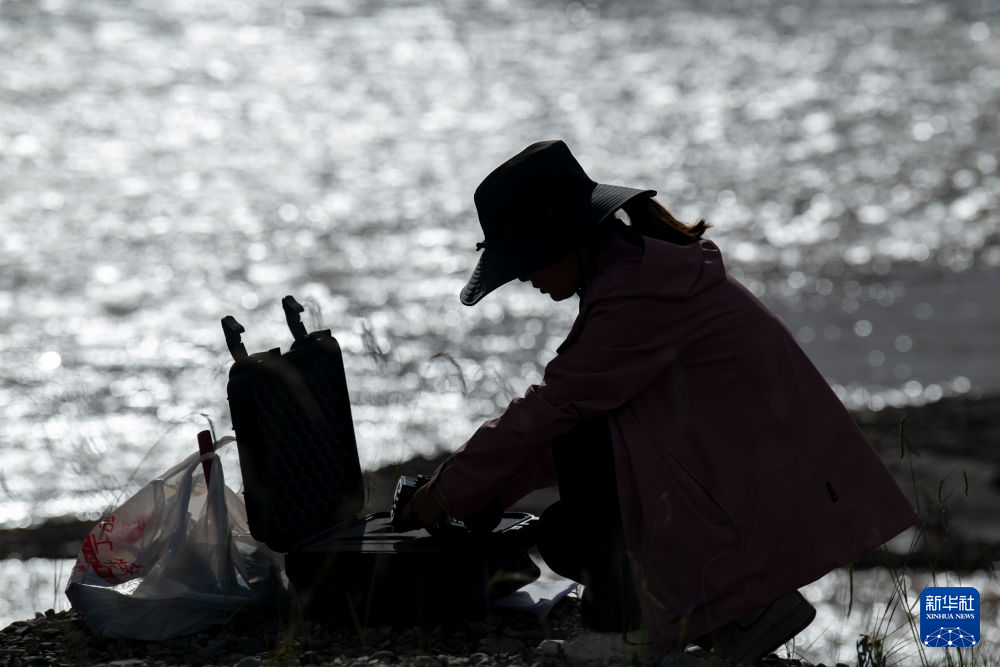 7月23日,長江科學(xué)院河流研究所的劉玉嬌(中)在聶洽曲收納采集的樣品。新華社 杜笑微 攝