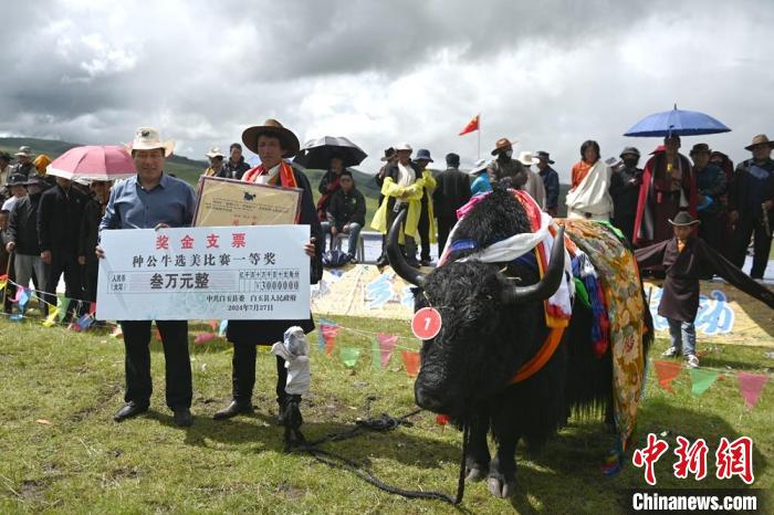 經(jīng)現(xiàn)場評審團(tuán)評選,來自白玉縣阿察鎮(zhèn)阿察村洛真家的牦牛以1158斤重量獲冠軍?!瓣笈_x美”比賽不僅展示了白玉縣牦牛的優(yōu)良品質(zhì),也激發(fā)了牧民們進(jìn)一步優(yōu)化養(yǎng)殖的熱情。