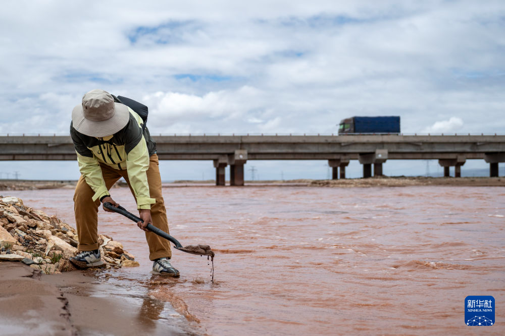 7月26日,科考隊員在楚瑪爾河進行床沙采集工作。新華社記者 伍志尊 攝