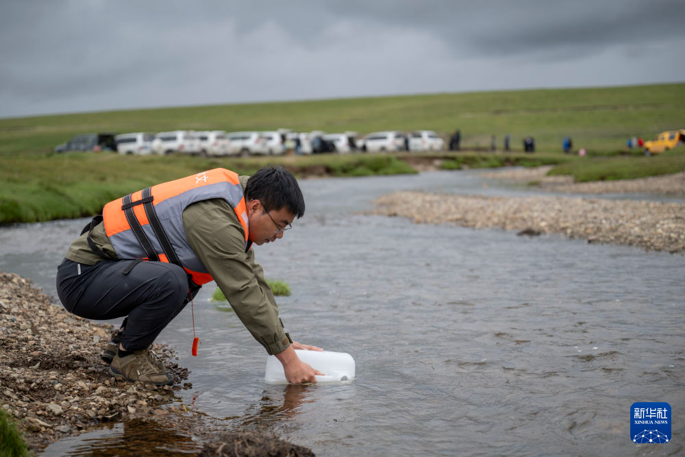 7月22日,科考隊員在當曲源進行水樣采集工作。新華社記者 陳杰 攝