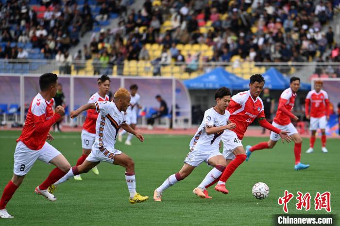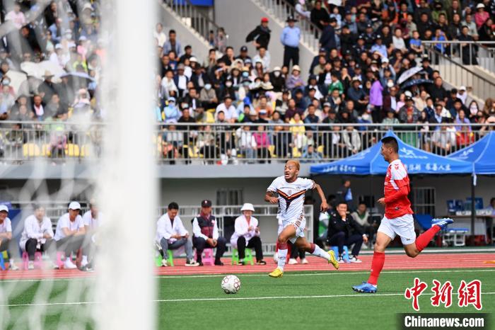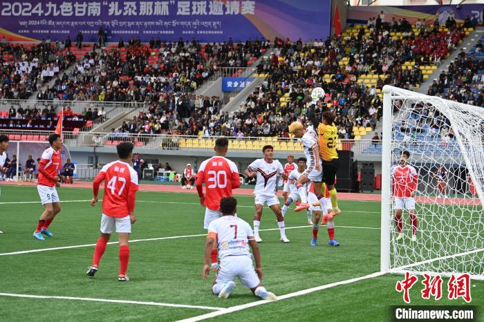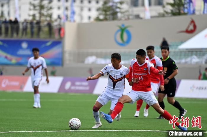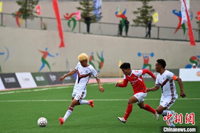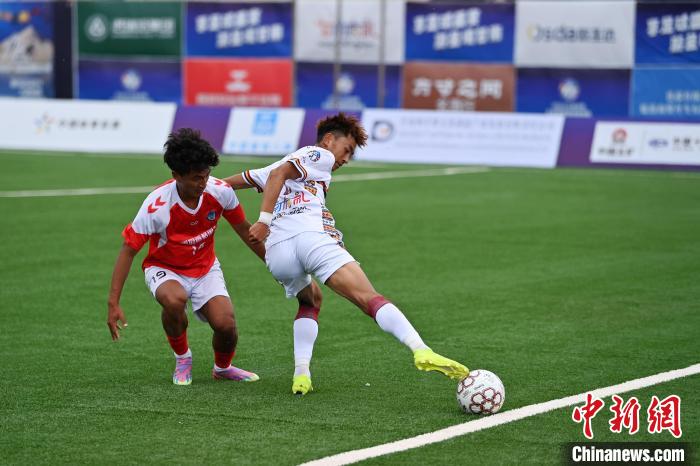 8月2日,甘肅甘南州隊(duì)球員(白)和云南迪慶州隊(duì)球員在比賽中。中新社記者 九美旦增 攝