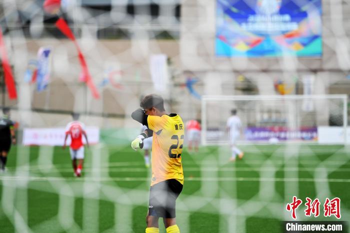 8月2日,云南迪慶州隊(duì)守門員在比賽中擦拭臉上的汗水。中新社記者 九美旦增 攝