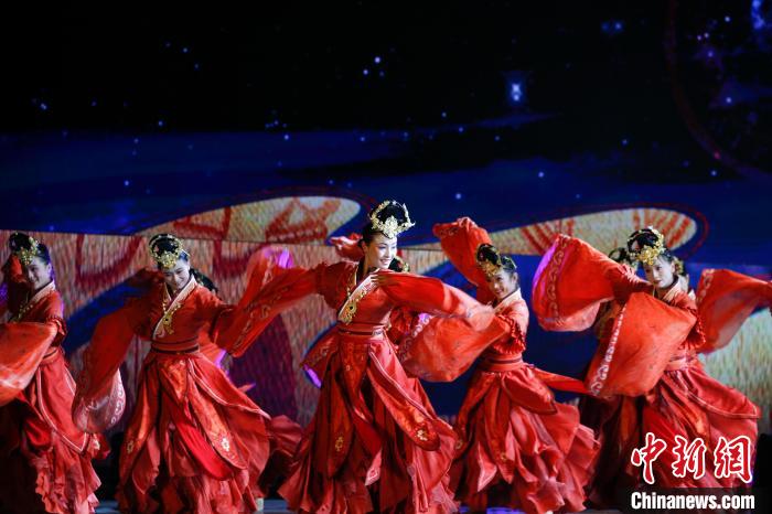 圖為晚會現(xiàn)場進(jìn)行舞蹈表演《絲路錦繡》。中新社記者 馬銘言 攝