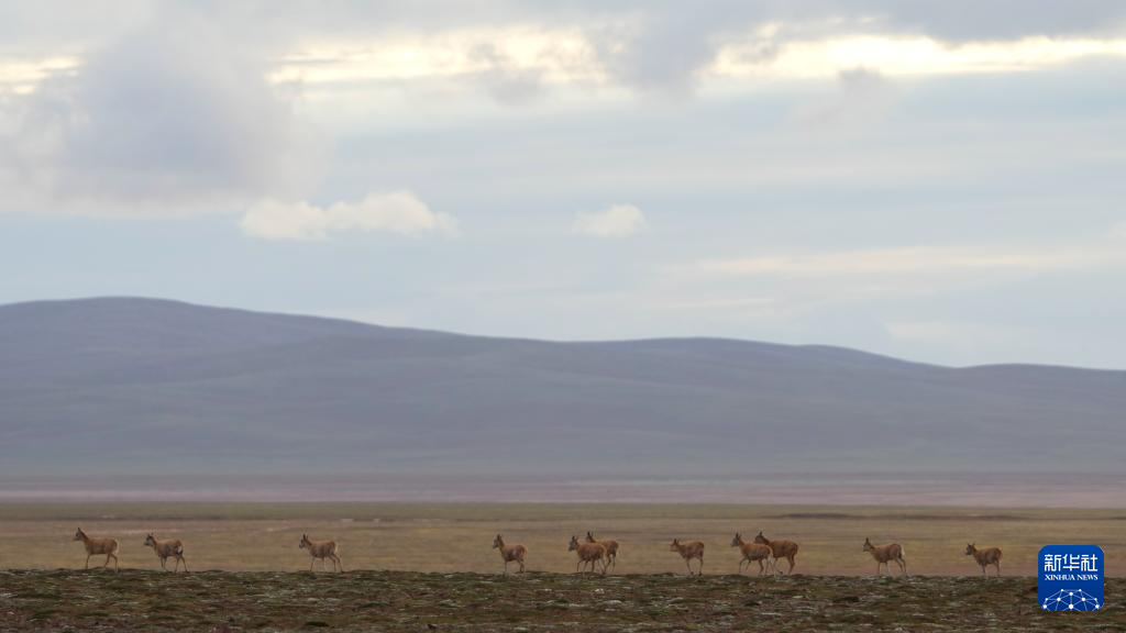 7月7日,在可可西里卓乃湖區(qū)域,藏羚羊在活動。 新華社記者 杜笑微 攝